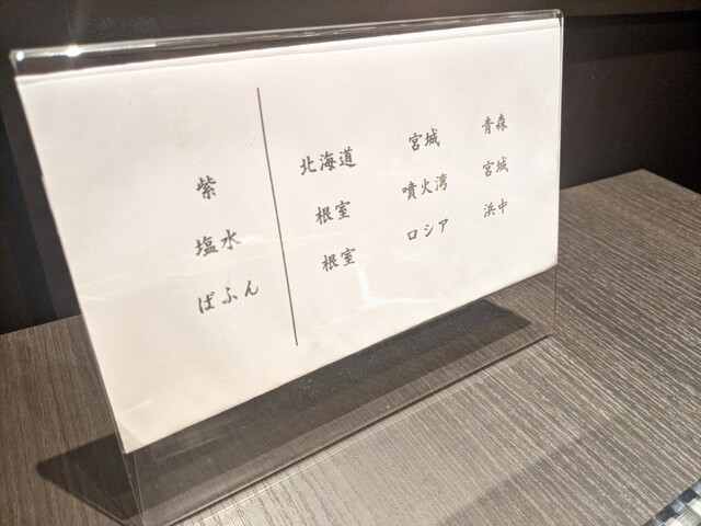紫、塩水、バフン の3種のウニにそれぞれ産地が3種で全部で9種味わえます。