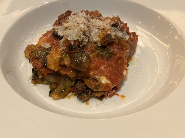 ラザニアは小麦粉の深い味わいの層の中きら溢れ出すたっぷりのチーズとチーズや様々な野菜、細切れのお肉など複雑で最高に美味しい味わいです。
