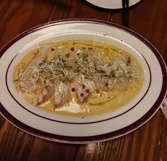 週替りパスタランチ1350円+鮮魚のカルパッチョ1650円+ビール770円
