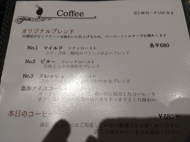 ★コーヒー(No.1マイルドレギュラー) 600円(税込み)