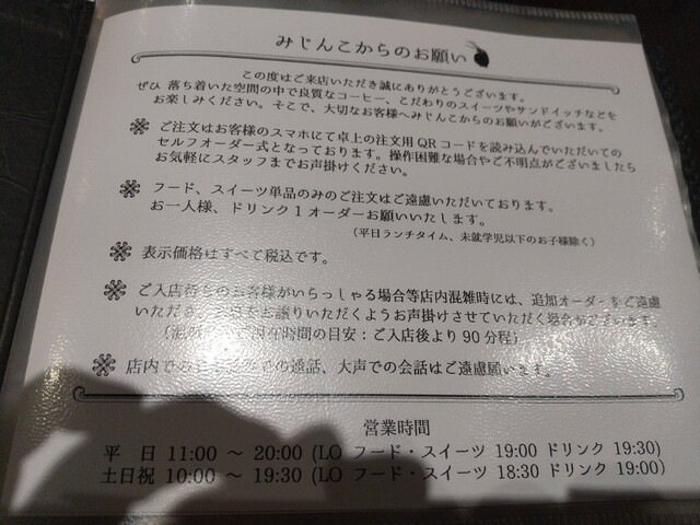 注文はテーブルのQRコードを読み取ってシステム上から実施。残念ながらお目当ての「みじパイ桃クリチ」は売り切れ。