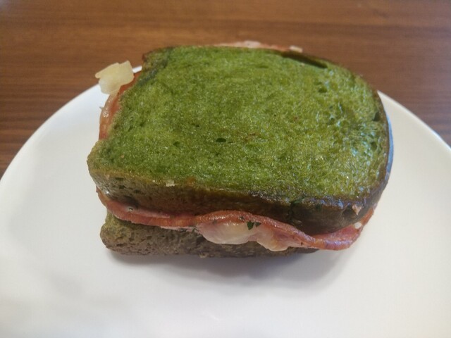 ・バジル?が練りこまれたサクッとした生地とハムのジューシーさ、玉子のコクがいいハーモニー。
