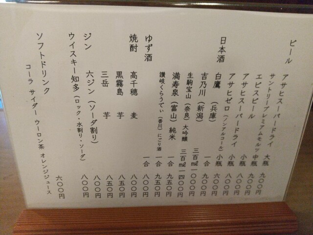 ドリンクはビールや日本酒、焼酎、ウイスキー等。