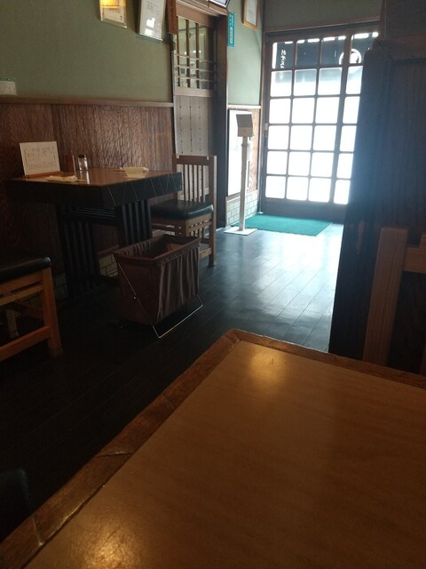 お店は歴史を感じる木造建屋。店内は落ち着いた和の雰囲気。4人掛けのテーブル席と、奥にお座敷席がある。カウンター席は無し。
