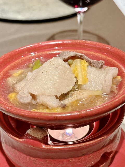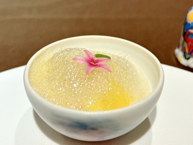 特に美味しかったのは、上海蟹の内子にキャビアを添えた一皿。濃厚でねっとりとした内子の旨みに、まろやかなキャビアの塩味が寄り添い、互いの味わいを引き立ています。口に含むたびに海の香りと深いコクが広がり、贅沢の極みでした!