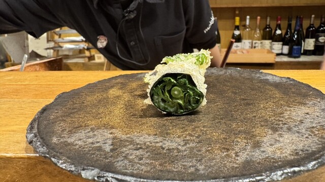 今が旬の香箱蟹、バフンウニのフォッカッチャ、再構築された里芋、しいたけ、マッシュルームなどまたしても衝撃の走る美味しさの天ぷらを沢山いただきました!