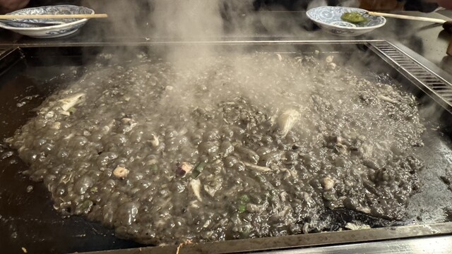 明太子もちもんじゃ、イカ墨もんじゃをオーダー。