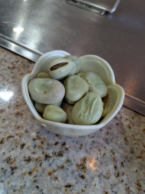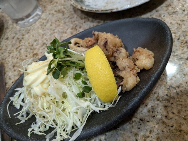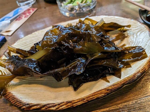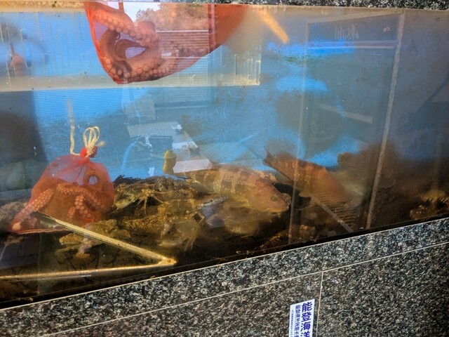 生け簀で泳いでいた赤エイのヒレを南蛮漬けにしたものがお通しでした。