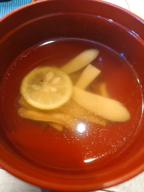 お肉は柔らかく、お出汁も最高。一緒についてきたお吸物は何と松茸入でした。