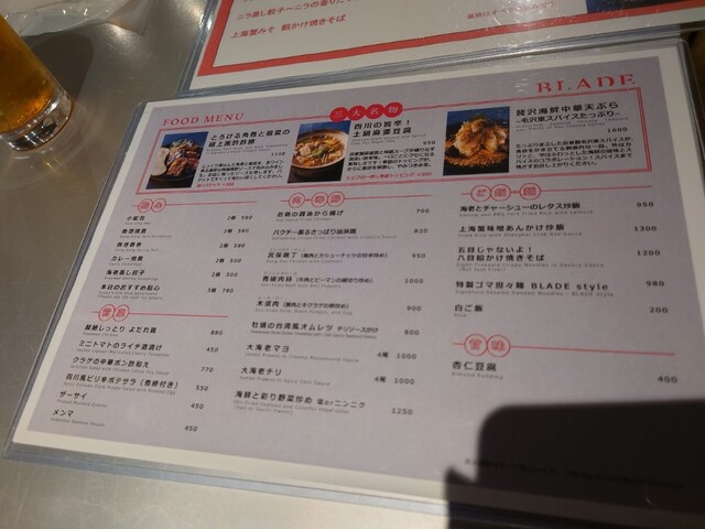 まずはプレモル生、上海ハイボール、烏龍茶ハイ、レモンチューハイ、壁のワインリストから赤、白グラスワイン等。