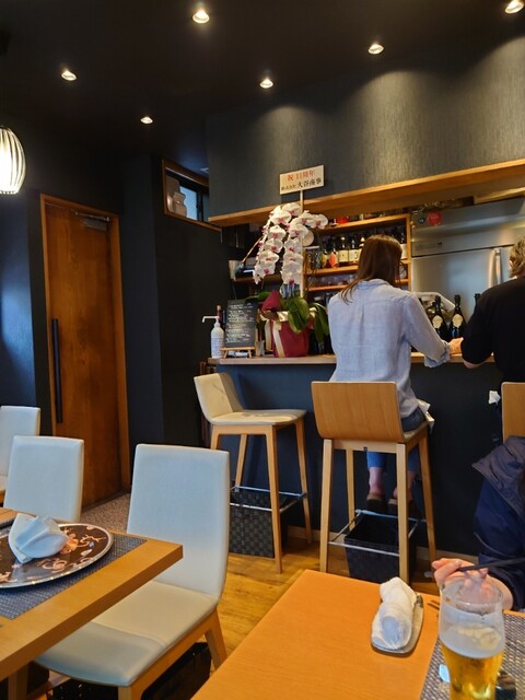 土曜オープンと同時の17:30に予約して2人で訪問、4人テーブル席に案内していただきました。カウンターには先客のカップルが、間もなくテーブル席も全てが満席となりました。週末は予約ないと入店難しそうです。