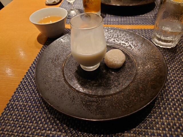 デザートは冷たい杏仁豆腐とココナッツの餡もち、満腹です。