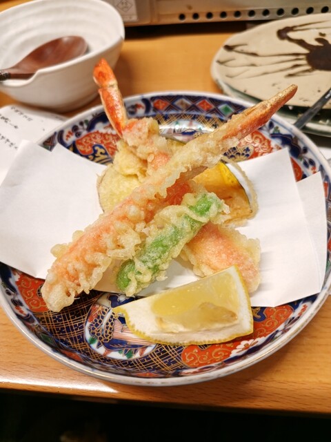メニューの途中で、カニの茶碗蒸し、カニの天ぷら、どちらも美味しかったです。