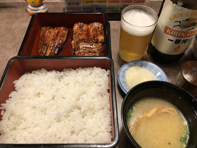 オーダーはうな重(竹)に、瓶ビール。鹿児島県のクーポンを使って700円引きで、お会計は1,990円!