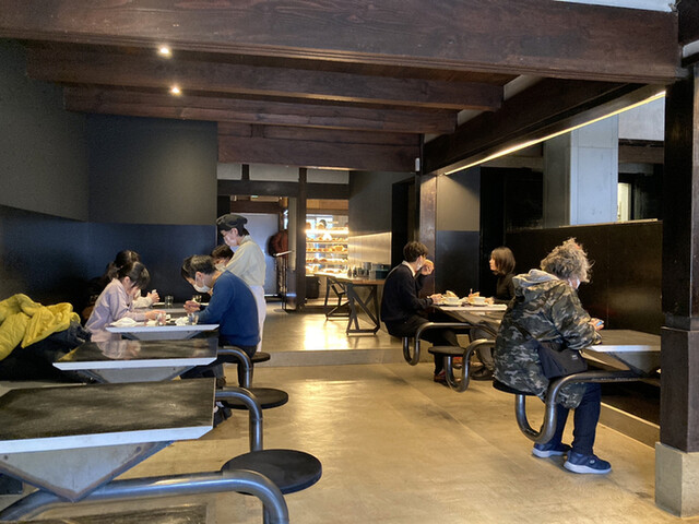 川原町の通りからは入り口が見えないのでパッと見では目立たないお店ですが、パン屋にカフェが併設された感じで、カフェも広々として雰囲気が良いです。