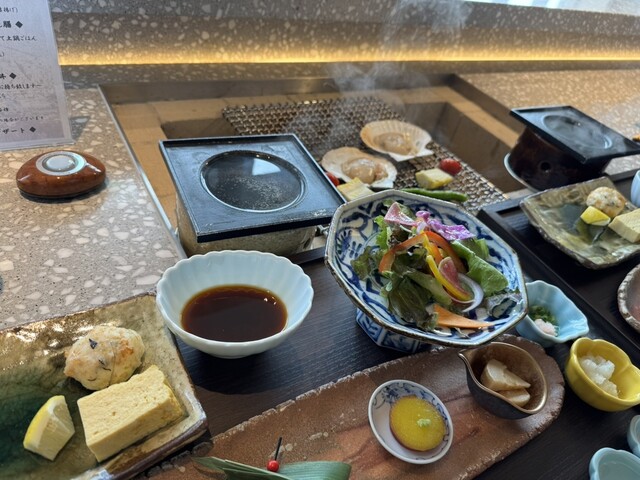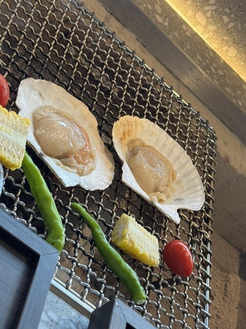 炉端で焼くホタテ貝もとうもろこしも、そして蒸籠蒸しのお肉も美味しく、更にデザートも選択できて全てにおいて満足♪