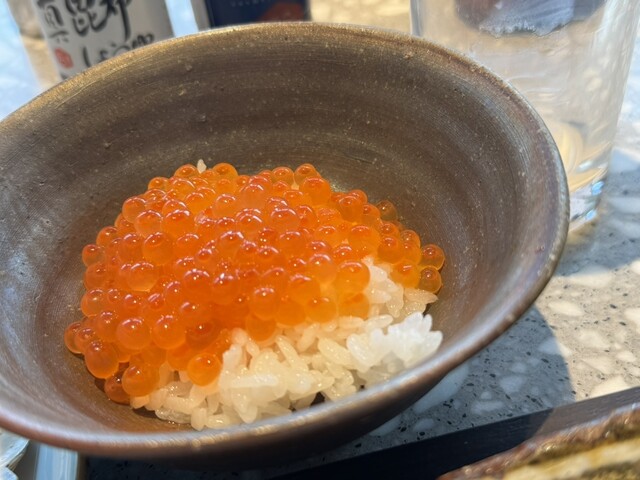 別のお茶碗にたっぷりイクラを乗せて食べると至福。炉端焼きのシャケをほぐして乗せて食べると至福。