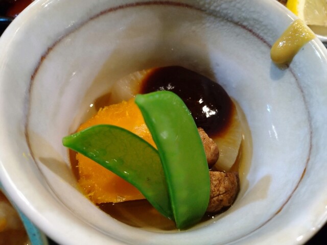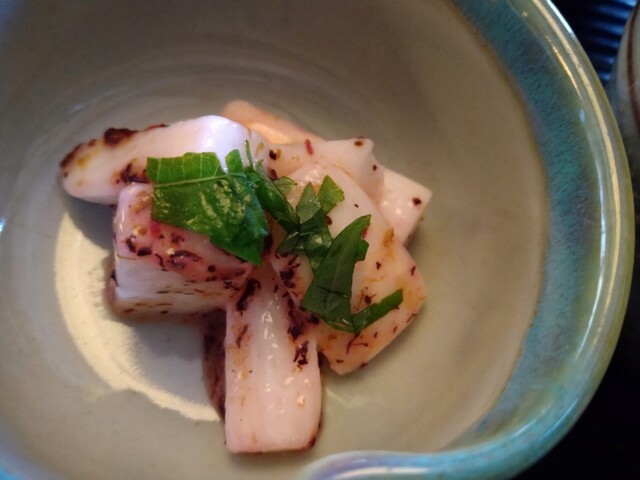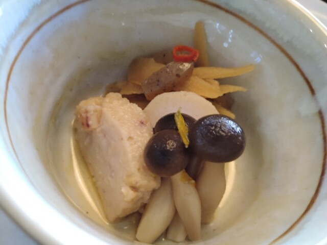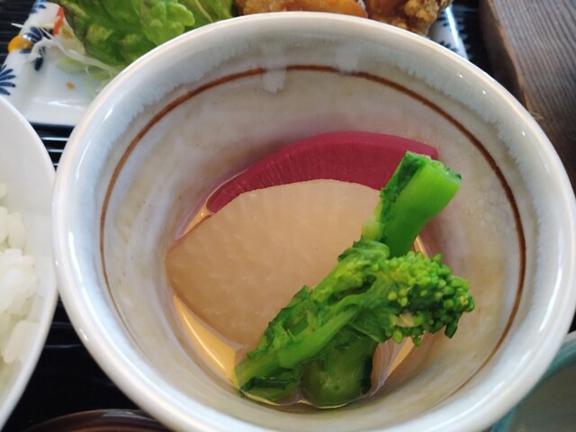 鶏の唐揚げ、千枚漬け、蕪の煮物