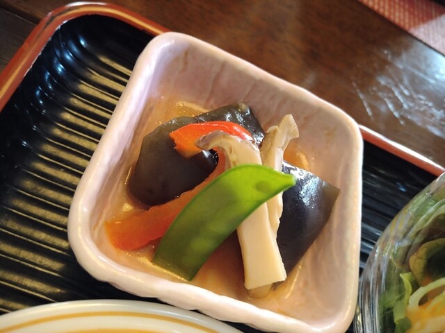 豚肉の生姜焼き、きゅうり煮の餡掛け