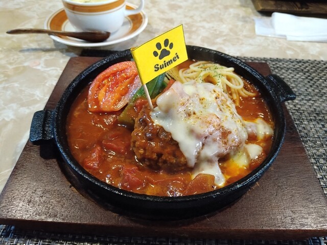煮込みハンバーグ・タコちゃんパスタ 夫婦ともに気まぐれランチ以外をオーダー