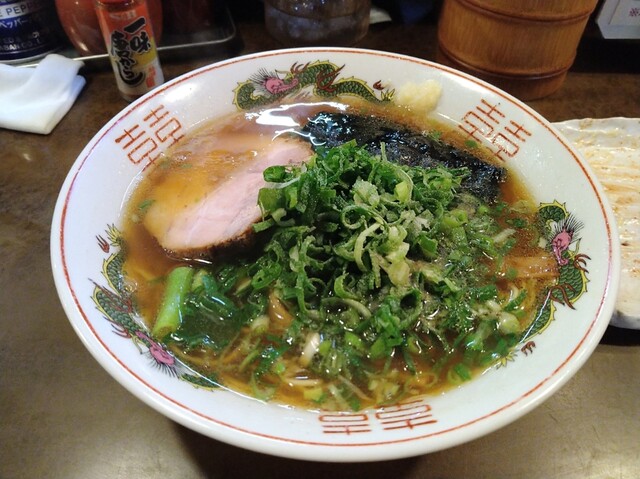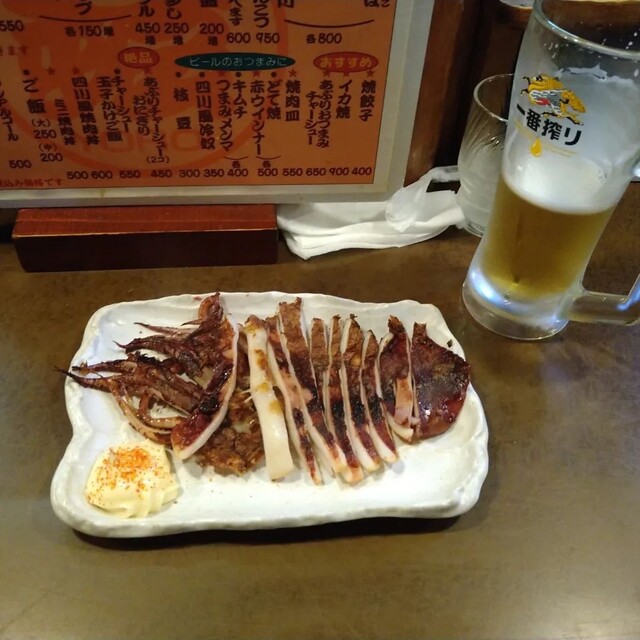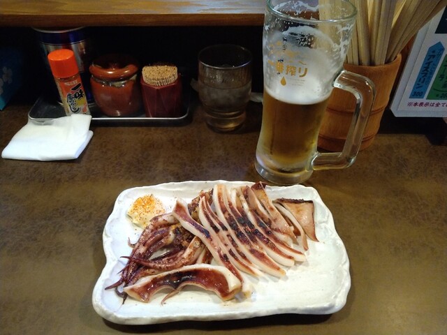 いつもの生ビールとイカ焼き、中華そば・ネギ多し