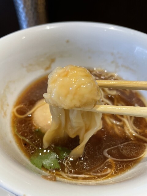 ワンタンはプリっとした凝縮した旨味の海老としっかり味付けされた肉饅。どちらも皮まで旨し。味玉も濃厚でうまいやつでした。