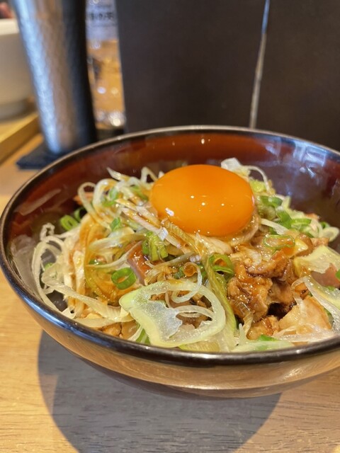 つけダレはアタック強め、山水地鶏ベースのまろやかな味わいの醤油ダレは噛めるような重厚感。このつけダレは美味い…!(個人的に塩より圧倒的に好み。)