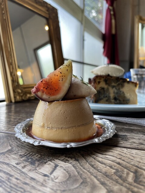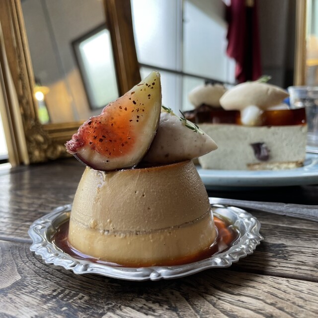 二層になった栗プリンに栗のクリームとフレッシュなイチジクがのった超可愛いビジュ。