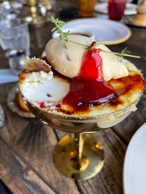 香ばしい焦がしたカスタードとたまごのコク、ソースをはじめ、中に入っている各種ベリーの甘酸っぱさがアクセントになりペロリと食べれる1杯。