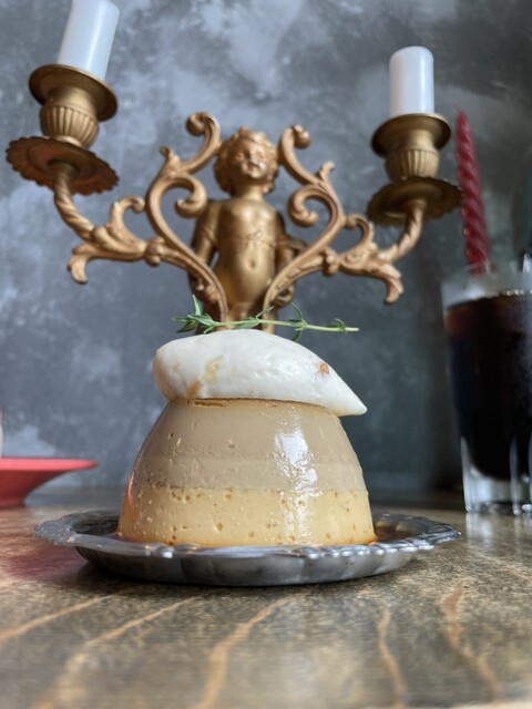 ヘーゼルナッツのプリンなんて食べるのは初めて。プリンはいつものむっちりタイプの中身がぎゅっと詰まったもので、下はチーズプリン、上はノワゼット。香ばしい風味とほのかな甘味にコクを感じる味わい。何が入ってるとか聞いてないからわからないけど、めちゃうま!