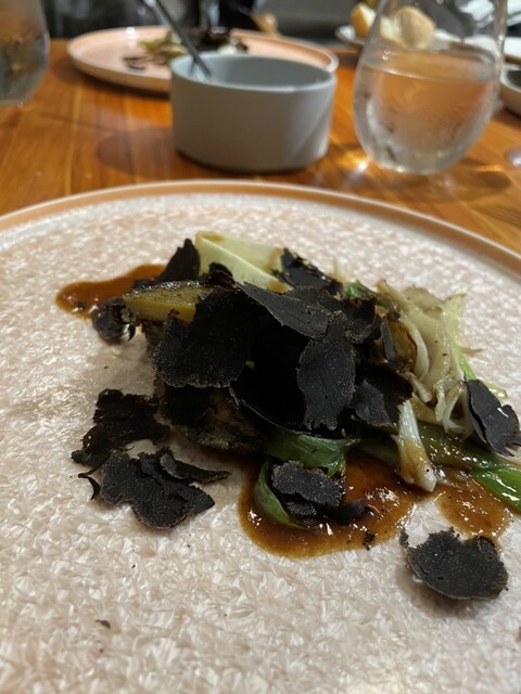 柔らかく凝縮された牛のリブロースと脂身のコクや甘味を感じ、牛の脂が絡んだ松茸はとても香ばしい香りで奥行きのある余韻。スパイシーで複雑な味わいのソースが味わいに深みを加えます。