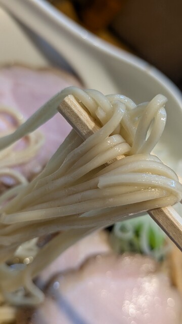 純ニボシよりもスープの口当たりがこってりマイルド、塩味が強く、煮干しの苦みもより感じられる