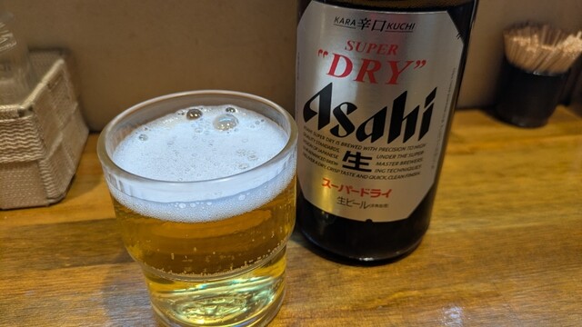 ビールは“一番搾り”か“スーパードライ”か尋ねられたので、“スーパードライ”にしてもらう