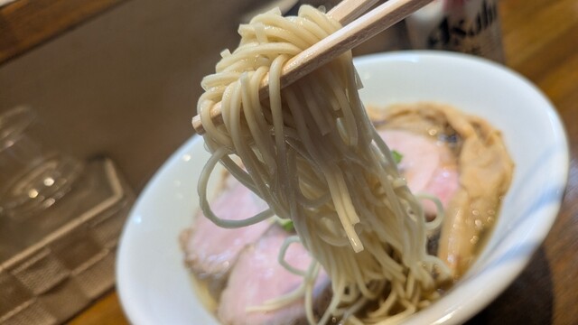 スープは塩味、柚子が香る、啜ると和凡さんの煮干し出汁がジワジワと口の中に広がる