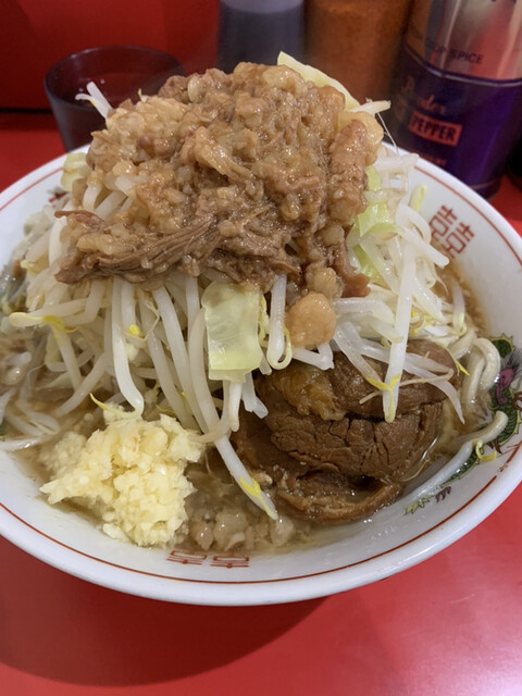 ラーメン小豚、野菜増しまし、にんにくまし、脂増しまし