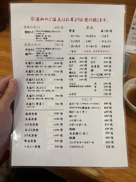 私は追加でキス天220円と、半熟卵天200円を注文しました。
