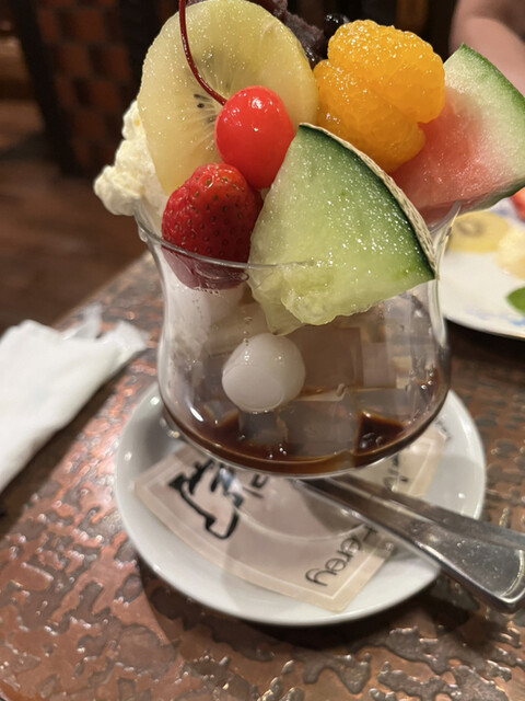 カスタードプリンを追加注文。そして妻はアイスコーヒー、俺はクリームソーダ。クリームソーダは青、緑、赤だったかな 3つから選ぶクリームソーダは3つ頼みたくなっちゃうがここは緑のクリームソーダを。