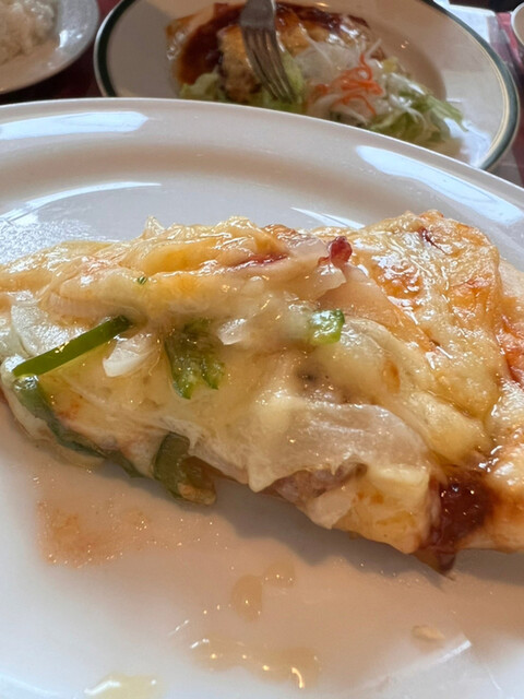 そしてメインのポークカツのチーズ焼き。とんかつってチーズ合うんだね。このソースがよく合う。いや〜美味い。ご飯がすすむ。