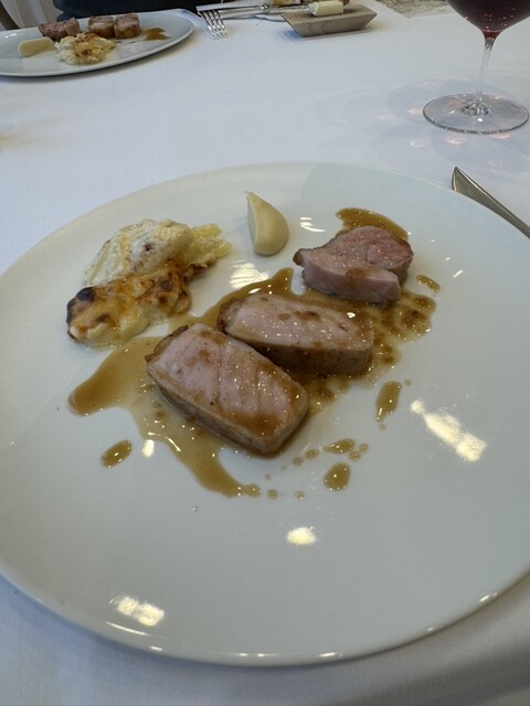 スープ、フィンガーフードから、メイン・デザートまで、一切隙のない完璧なコース。特にフォアグラと鹿のパテ、メインのポークと添えてあるポテトに感動。こんなに糖度の高いポテトがあるのかと、、、