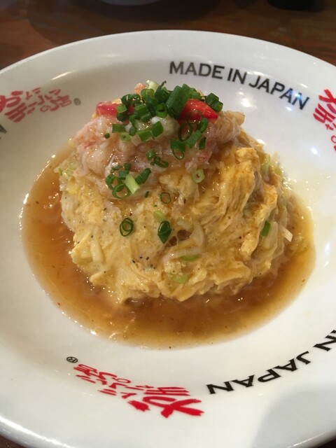 注文は半熟卵のカニチャーハンと肉の餃子です☆