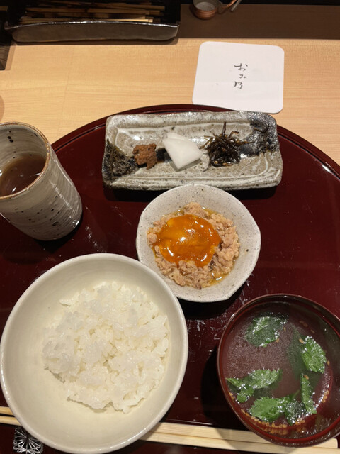 ・締めのご飯セット(黄身の醤油漬け、紫蘇昆布などの付け合わせ)