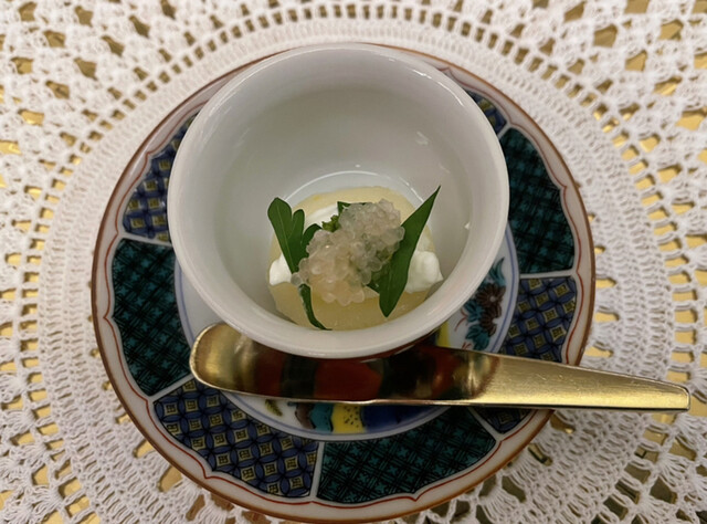 レモンソルベとヨーグルトにフィンガーライムの清涼感がたまりませんでした。