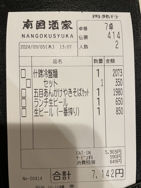 「五目具だくさんあんかけやきそば特別ランチセット」 2,178円 (別途サービス料10%)