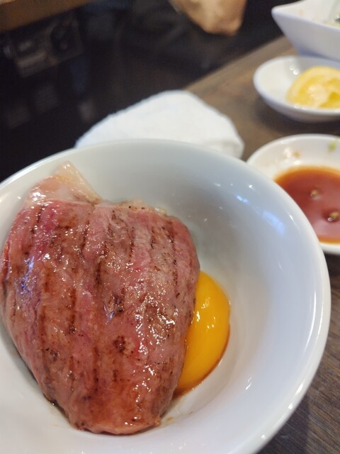 愛想よく、でも焼きに集中。あっという間に一口ご飯と黄身の器に盛ってくれる。