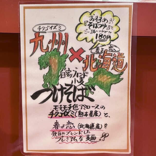 麺は、はるゆたかの一等粉をレギュラーで提供されています。