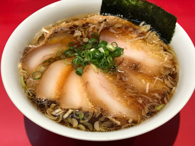 鶏豚の油がスープ表面覆い隠し、濃厚醤油味でめちゃくちゃ美味しいです。