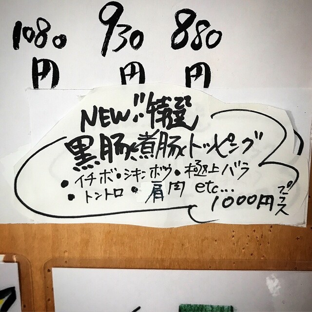 New!!煮豚トッピングの部位の種類は、イチボ、シキンボウ、極上バラ、トントロ、肩肉、etc…。
