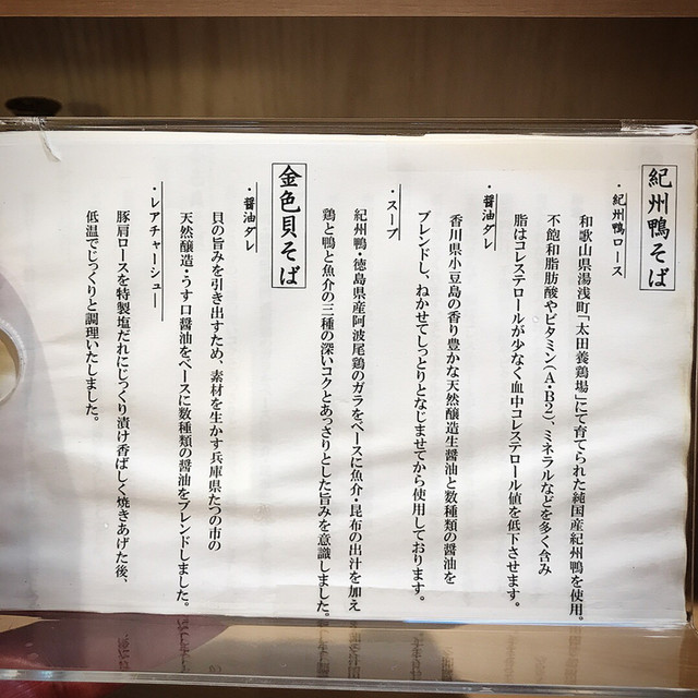 阿波尾鶏のガラをベースに純国産紀州鴨や魚介の出汁を加えたトリプルスープに、麺は加水率低めの全粒粉入り中細ストレート麺。