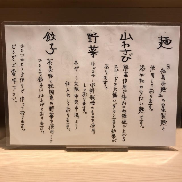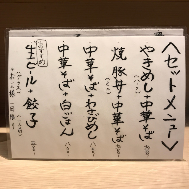 サイドメニューのおつまみチャーシュー、辛口ウインナー、和牛もつポン酢、餃子、松山鶏のからあげ、やきめし、も美味しかったです!