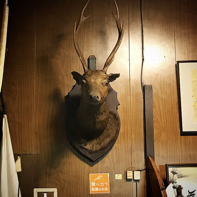 店内は鹿の頭の剥製、芸能人のサインなどが貼られていて、満席状態でした。